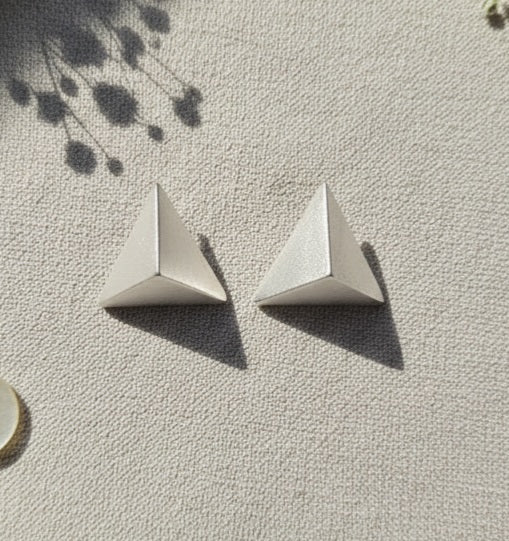 Introduce clean lines and bold geometry to your look with the Facet stud earrings. These striking pieces feature a minimalist pyramid shape in a perfect 3D form, offering a modern, architectural touch to any outfit.