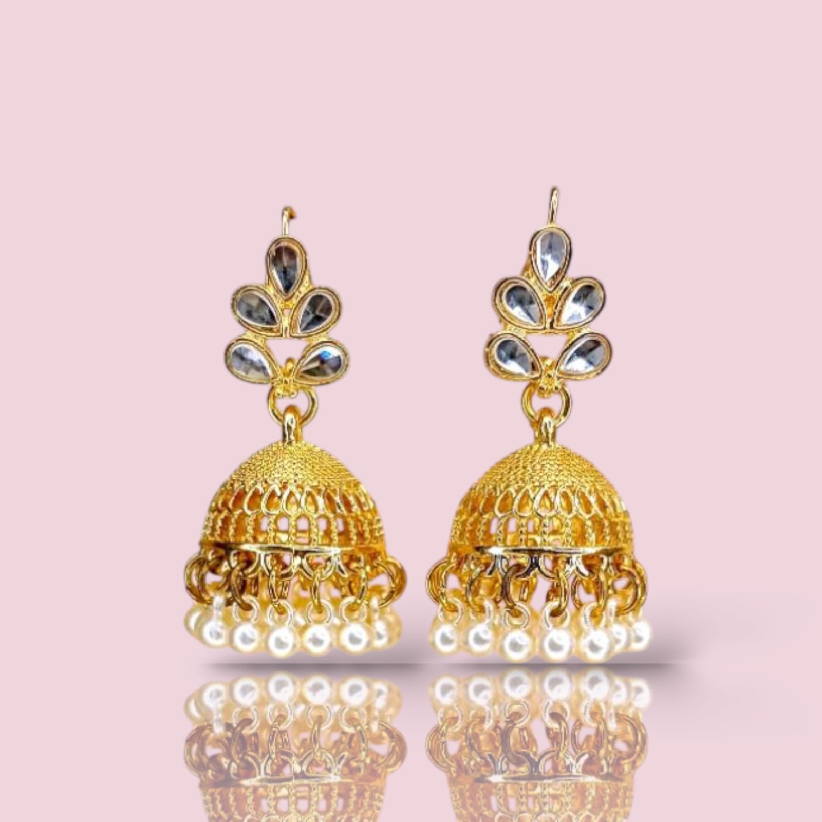 Style: Traditional Jhumka with an Ornate Leaf Stud.