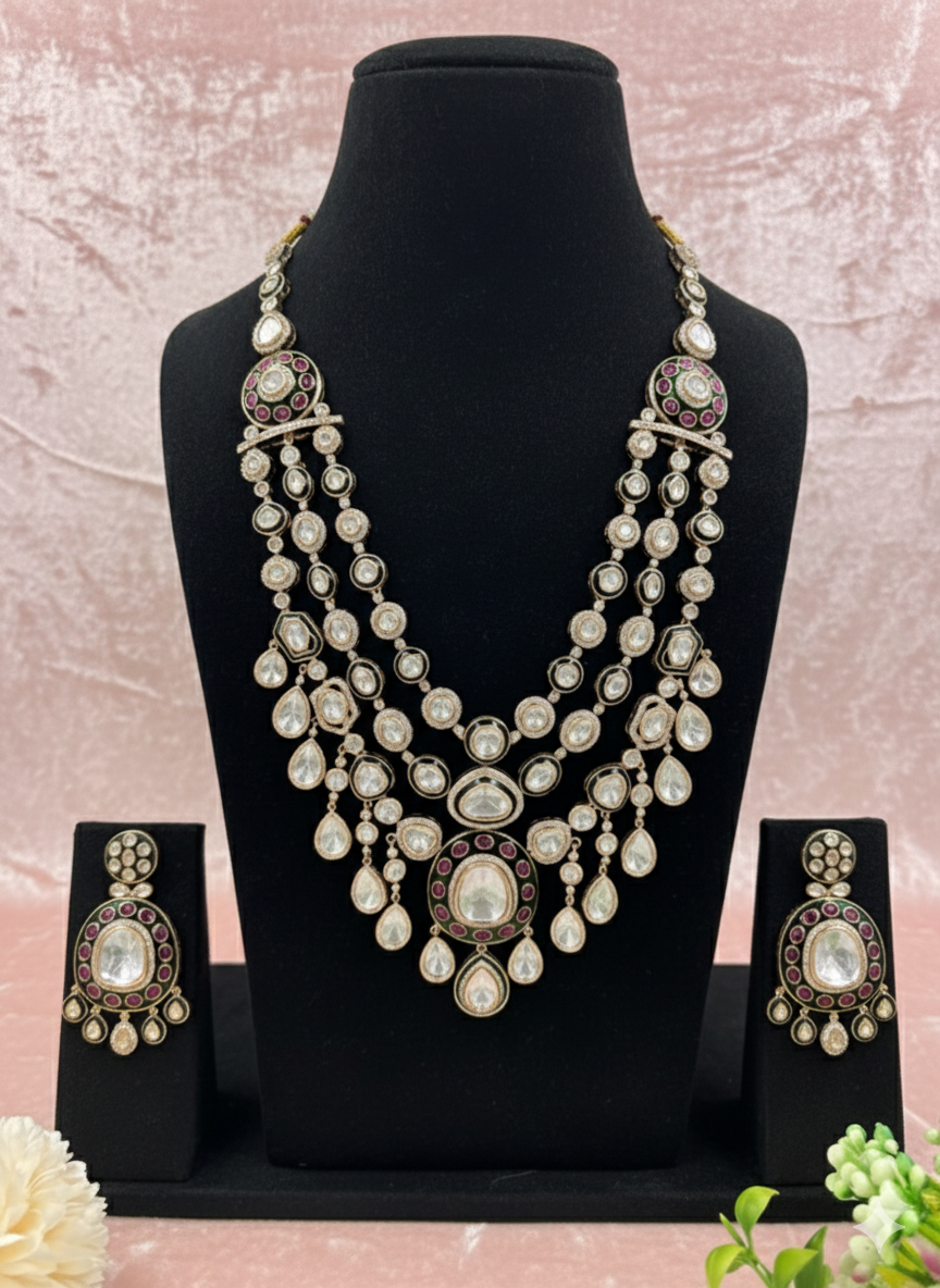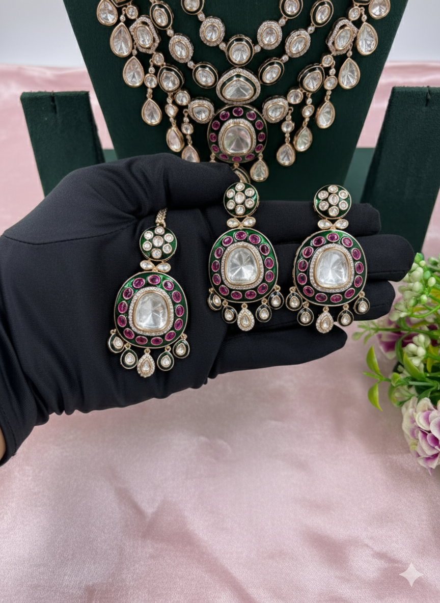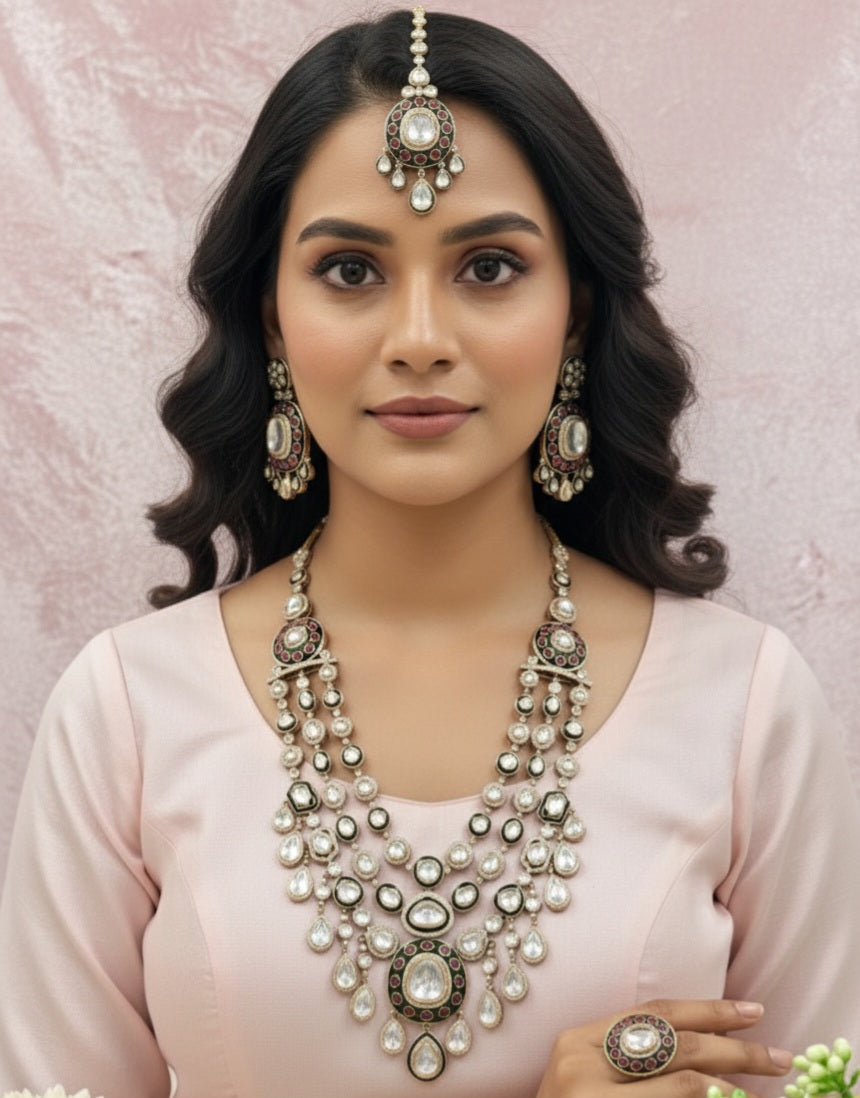 The Rose Quartz Arch Drops | Polki Stud & Pastel Pearl Chandelier