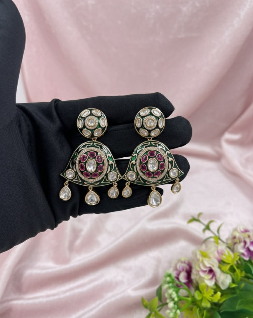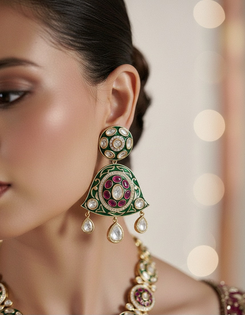 The Rose Quartz Arch Drops | Polki Stud & Pastel Pearl Chandelier