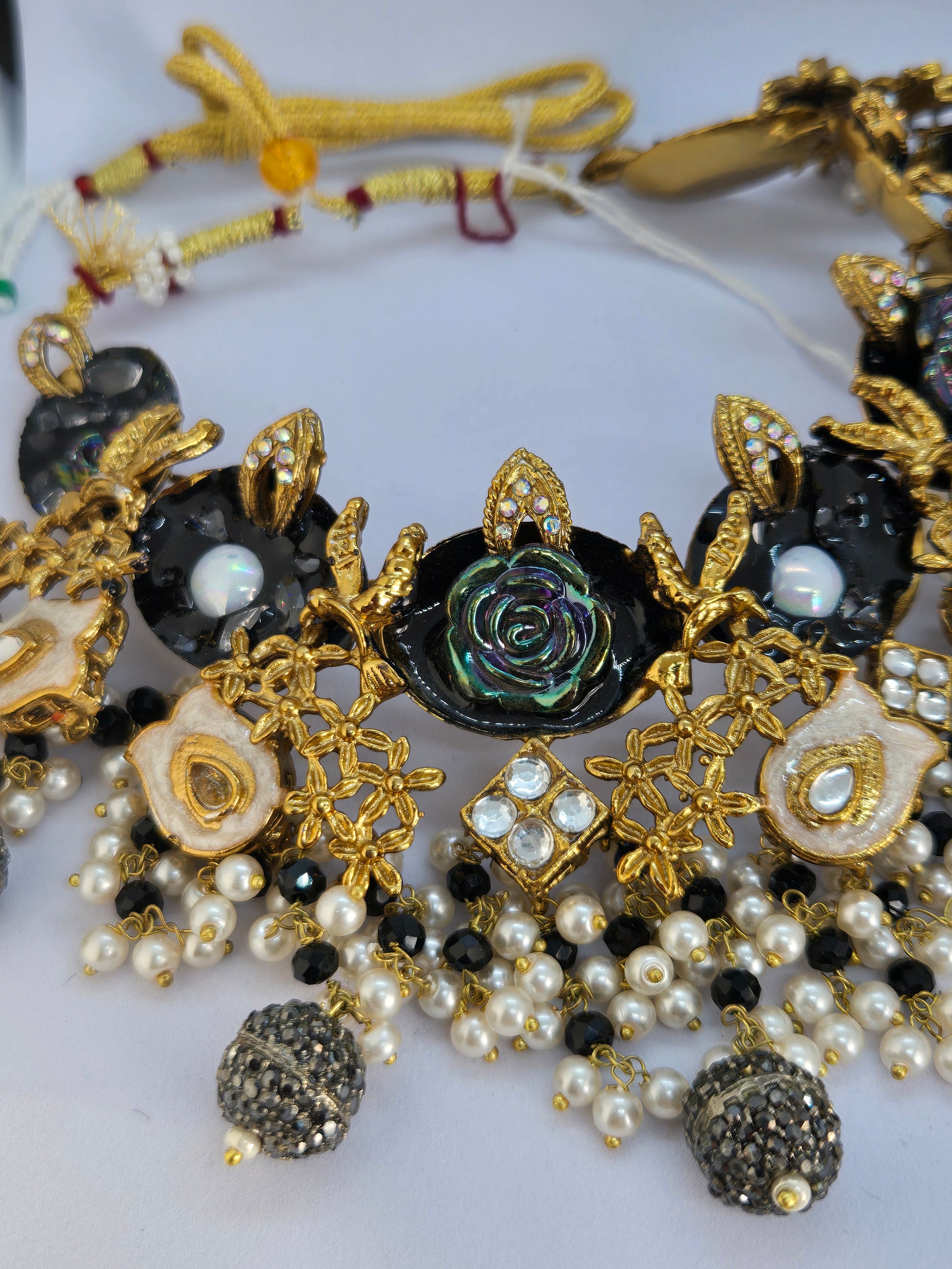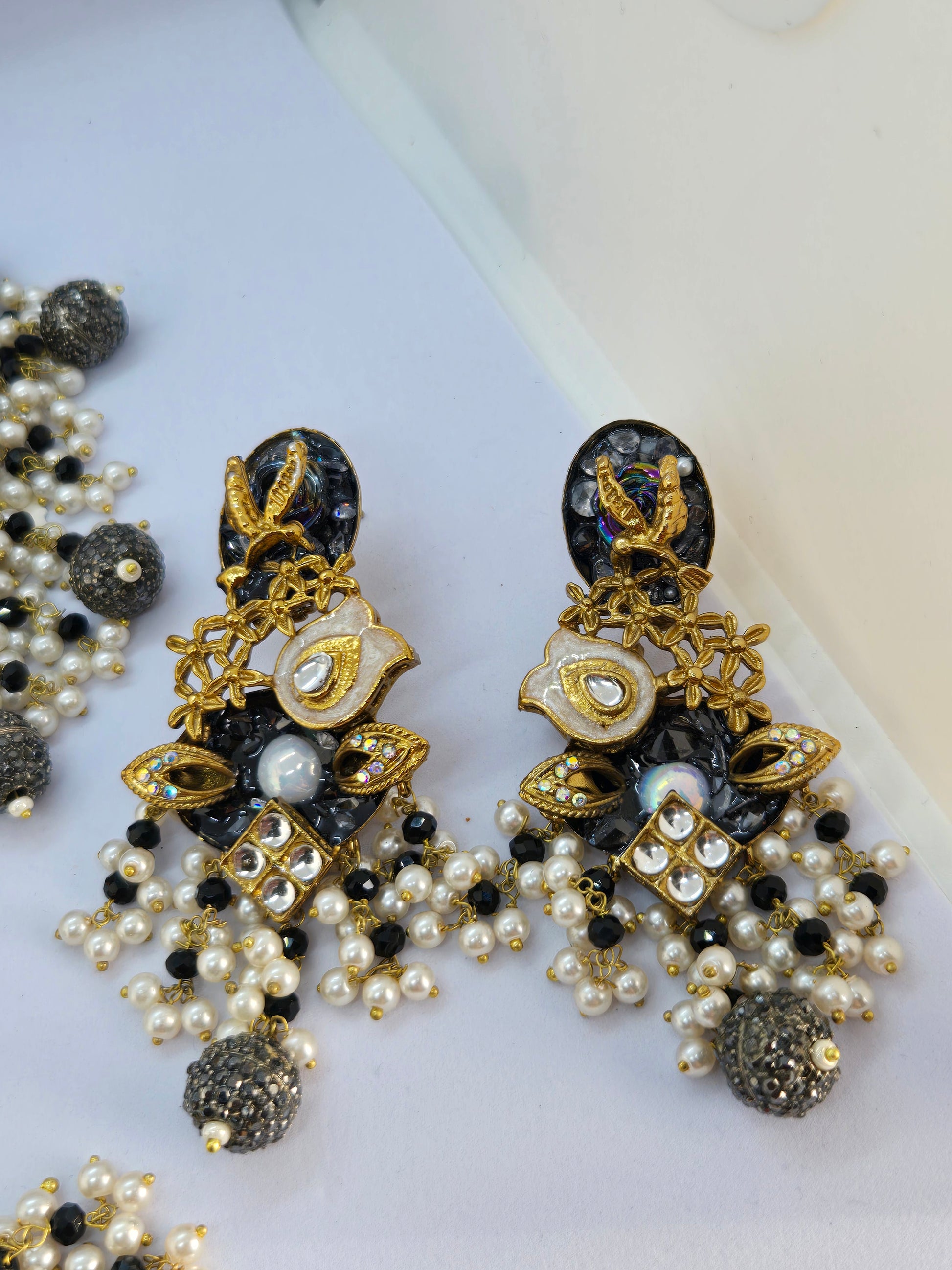 The Rose Quartz Arch Drops | Polki Stud & Pastel Pearl Chandelier
