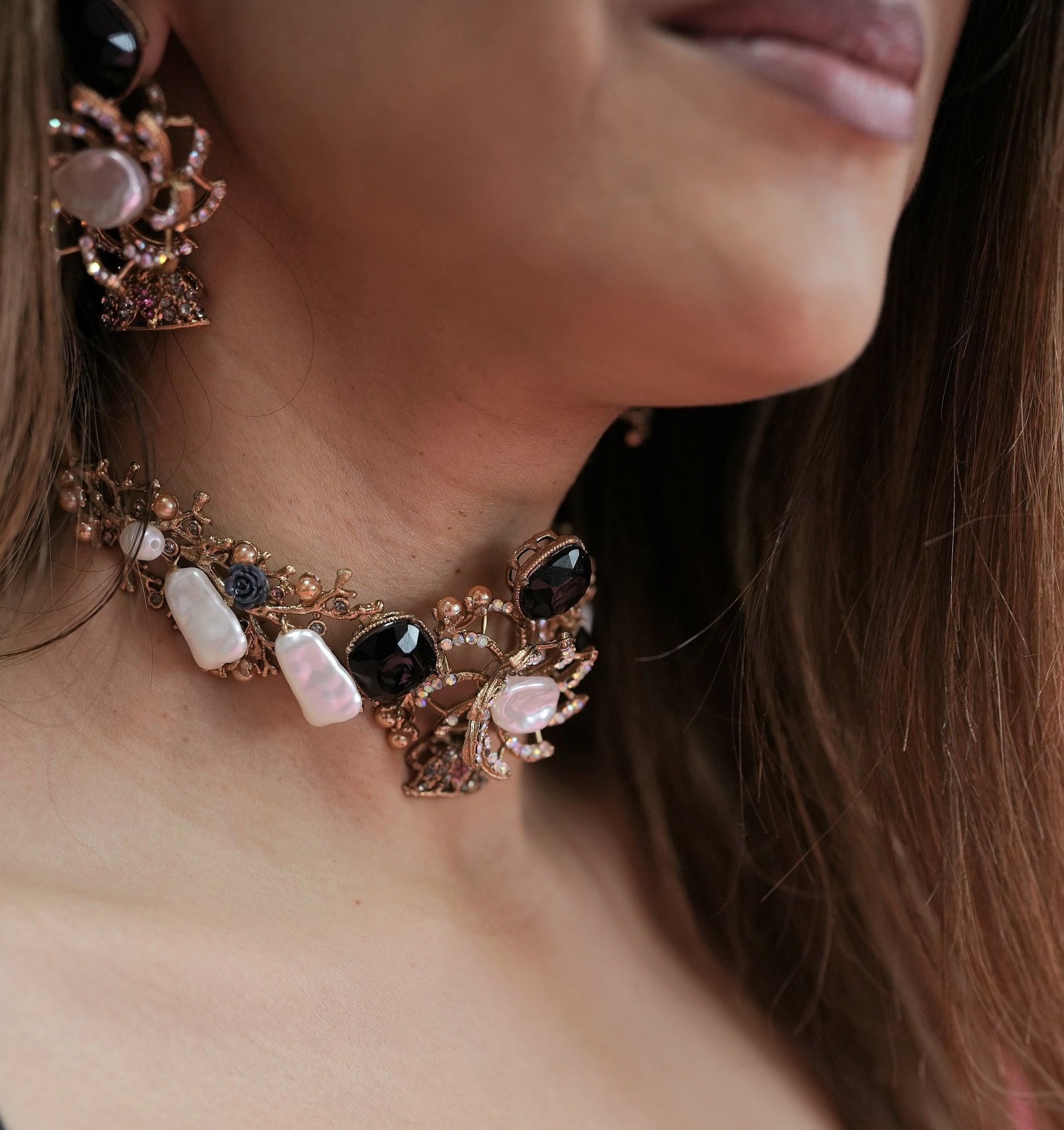 This designer statement choker set is the perfect accessory for black-tie events, formal dinners, weddings, or any occasion where you want to embody opulent elegance.