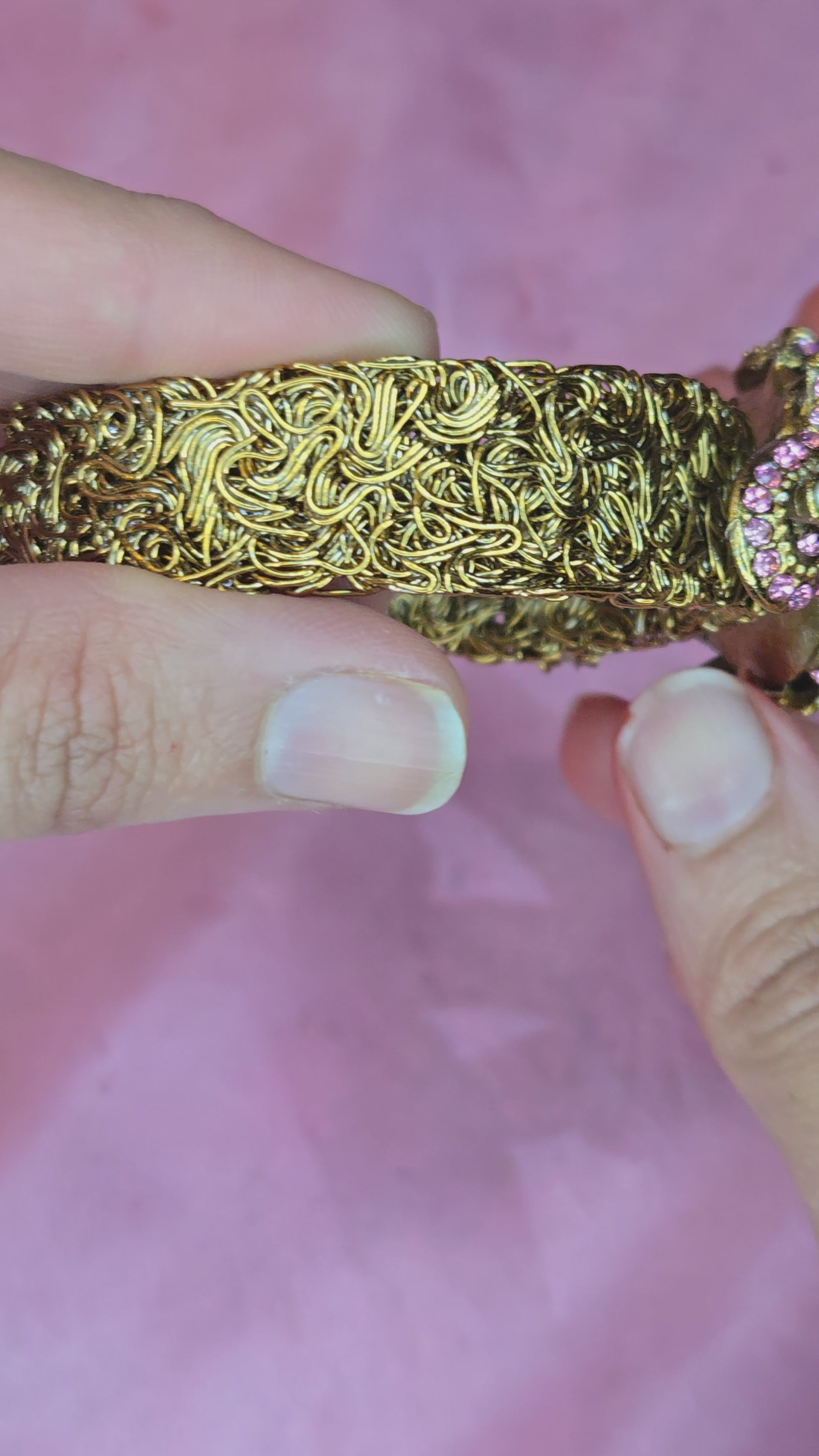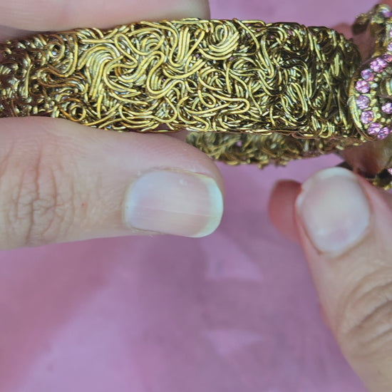 Discover the Gulnoor Pearl Royale Cuff, an antique gold cuff bracelet adorned with luminous pearls and soft pink detailing, perfect for festive and wedding wear.