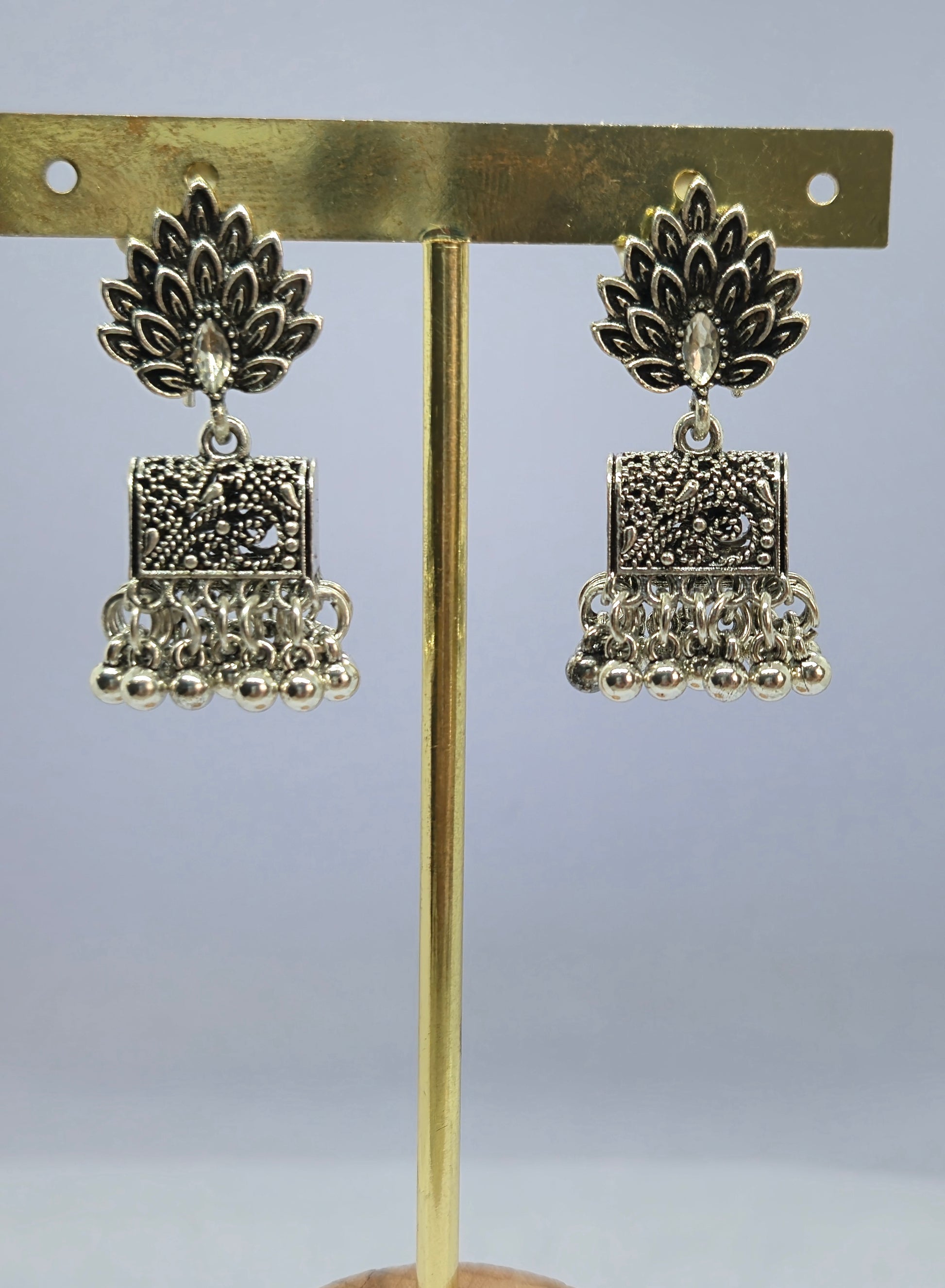 Style: Traditional Jhumka with a distinctive Square Bell and embellished stud.
