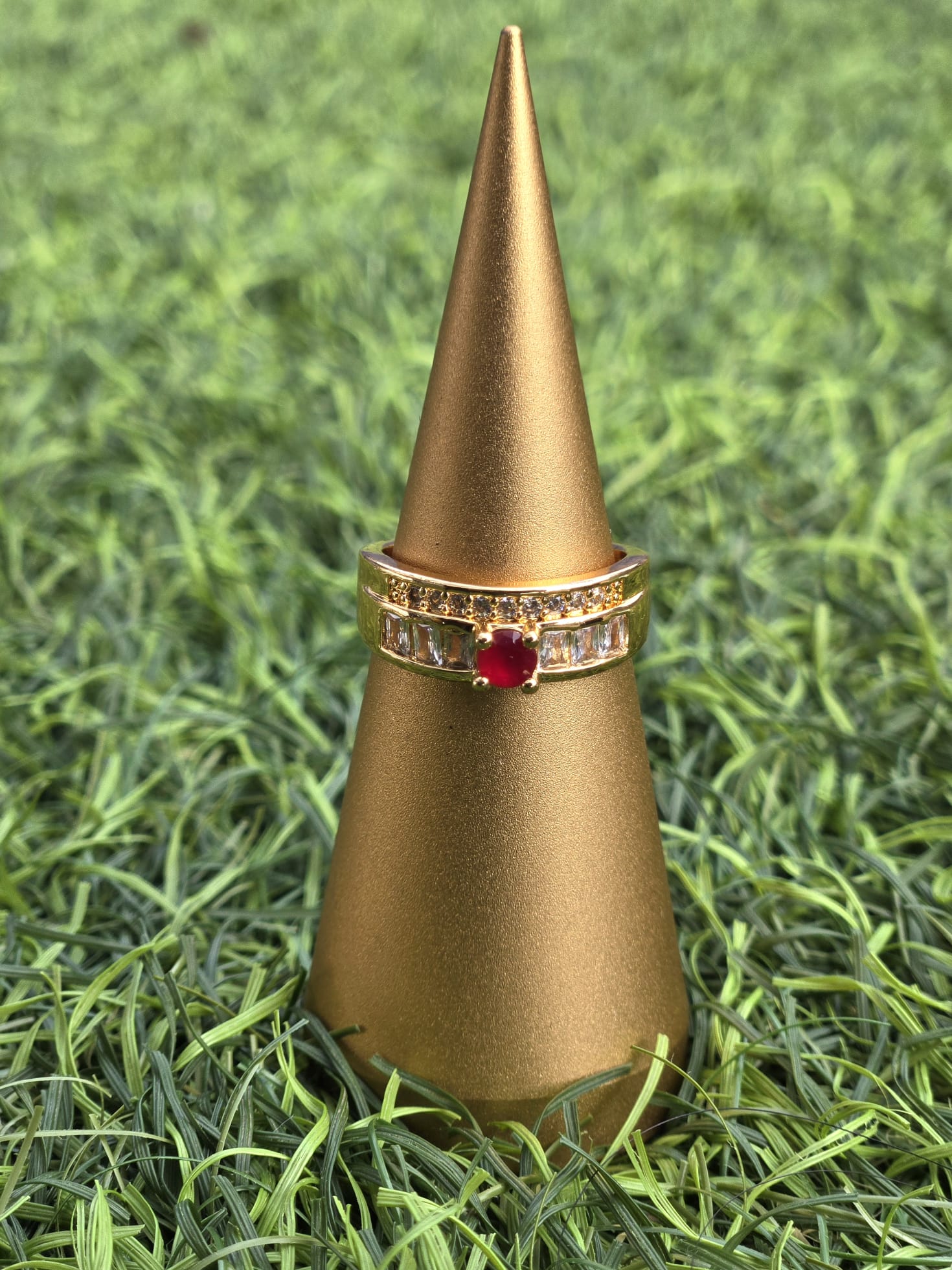 The subtle size and classic design make this band perfect for wearing individually, as a delicate promise ring, or layered with other rings for an amplified, colored sparkle. The rich gold-tone finish enhances the stones' vibrancy.