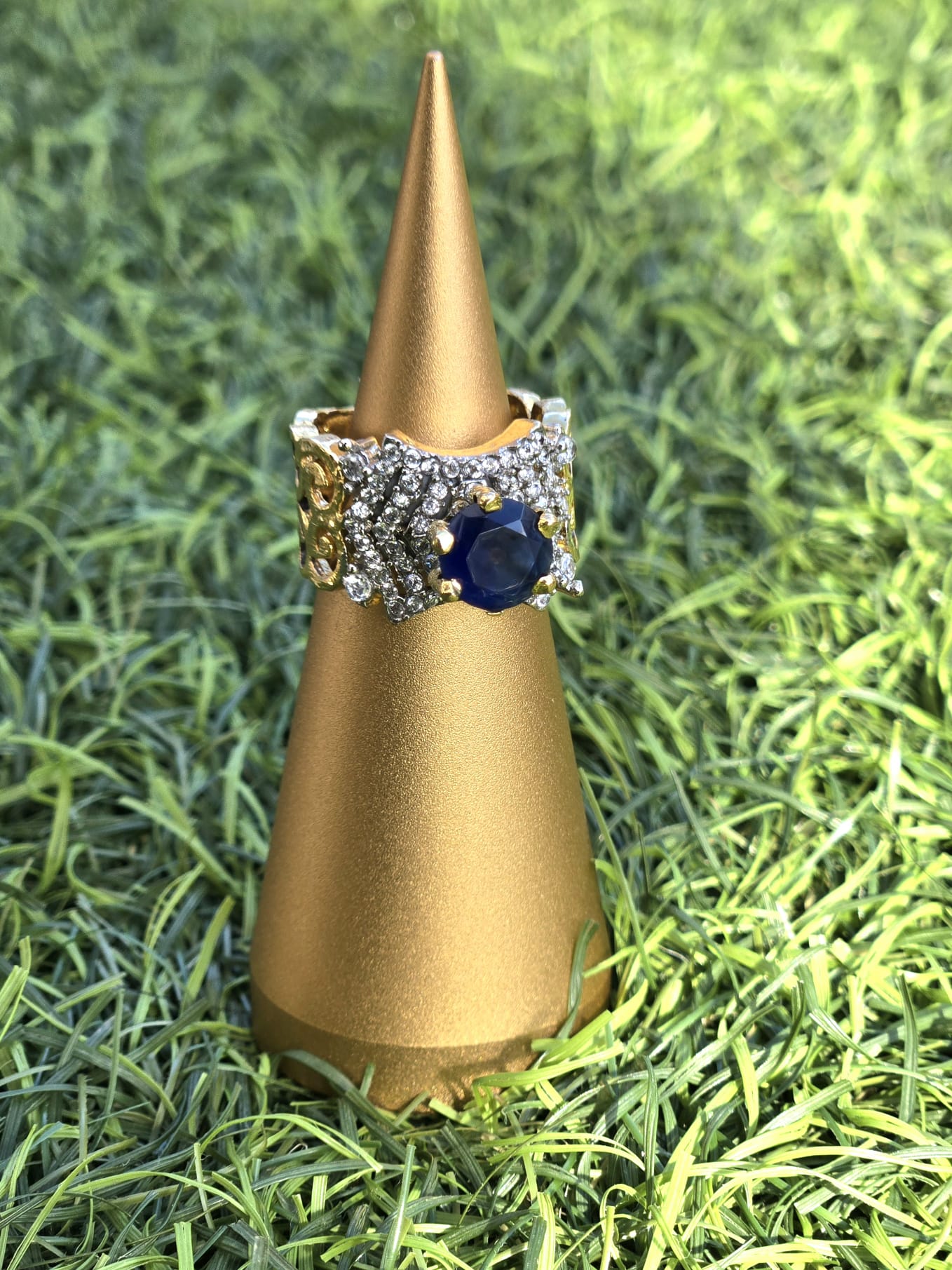Make a captivating statement with the Gemstone Cluster Ring, a beautiful and unique piece available exclusively from TAZIl. This phenomenal oversized ring features an artistic, dimensional cluster design that is bursting with texture and colour.