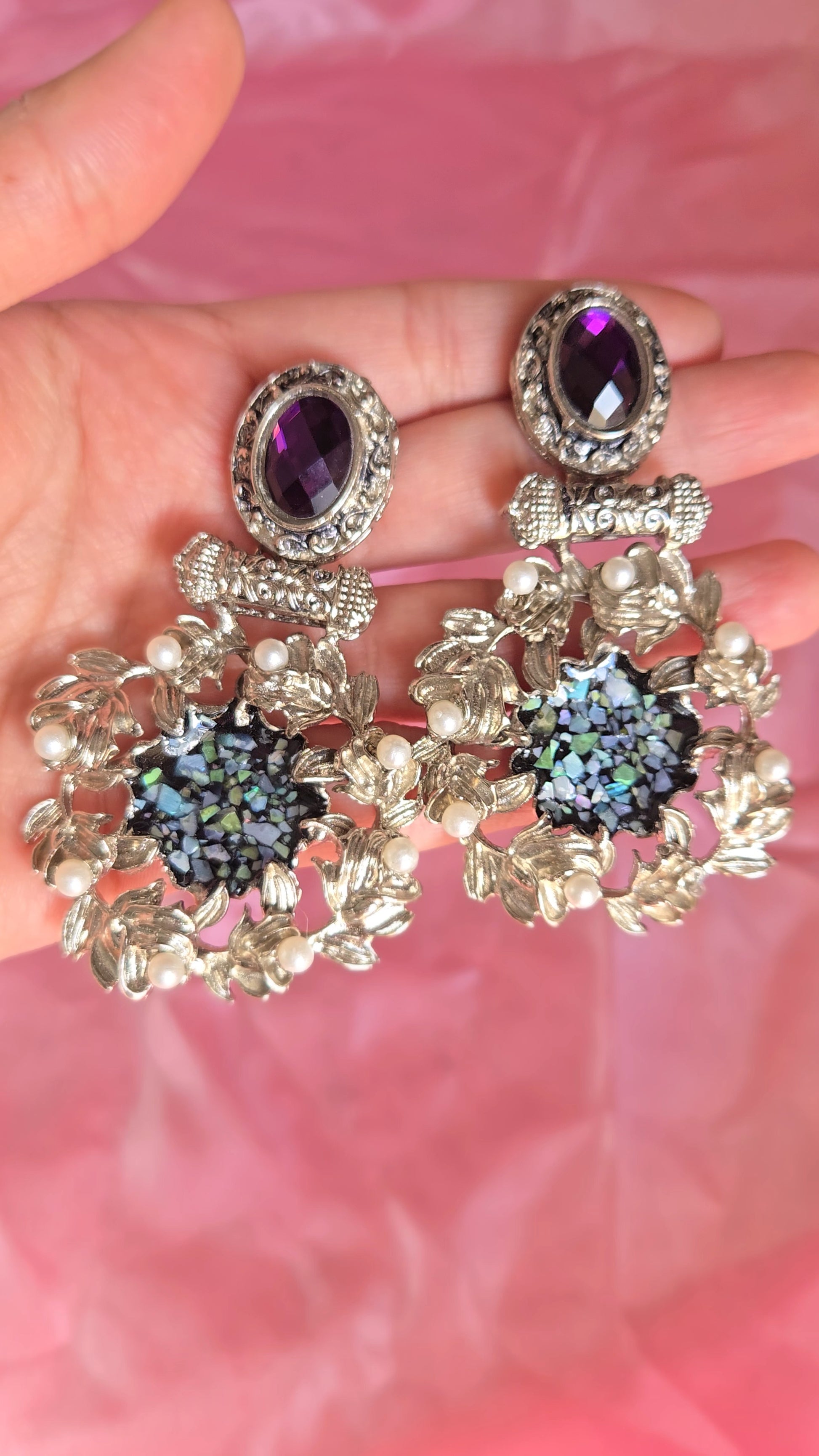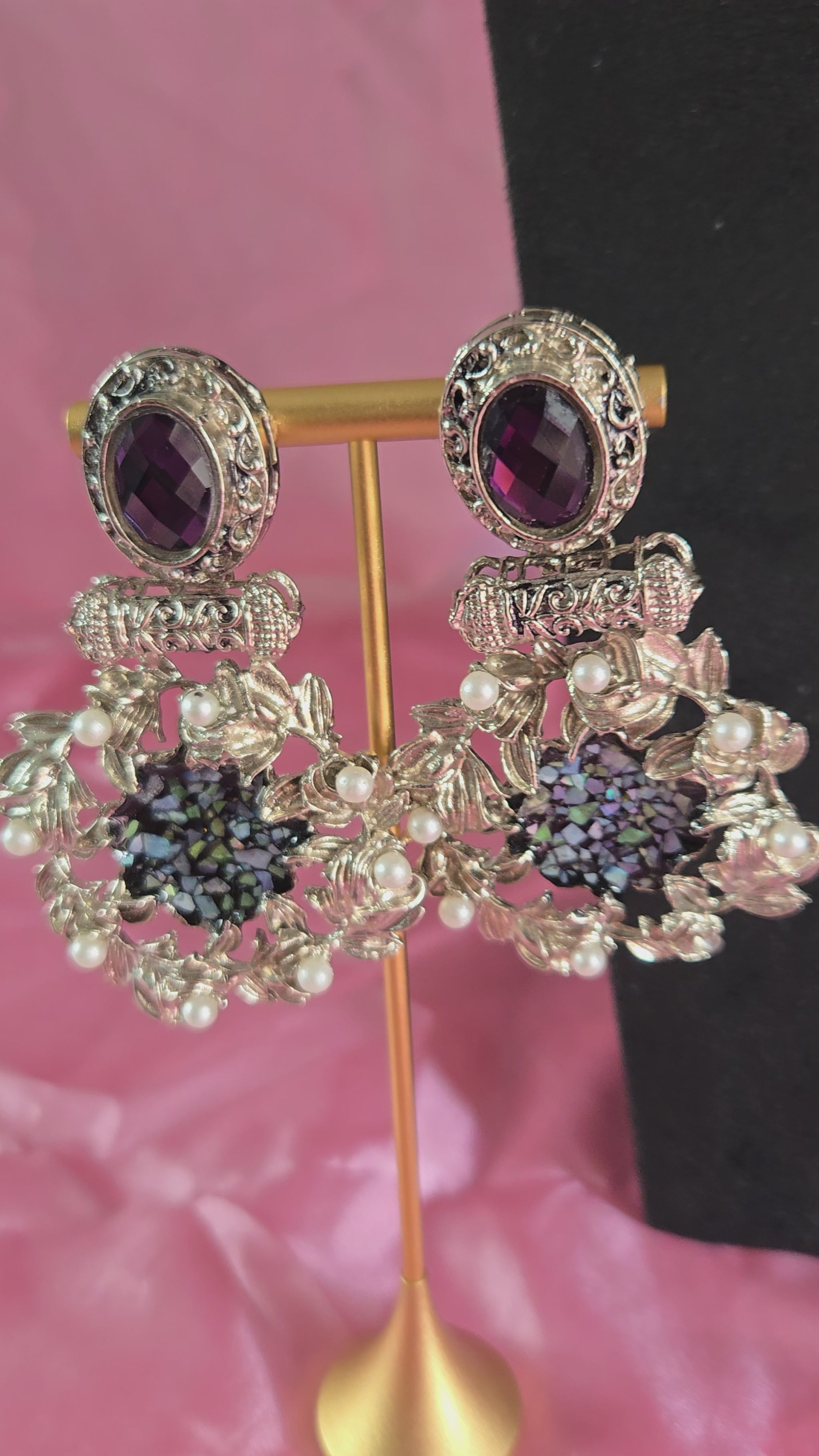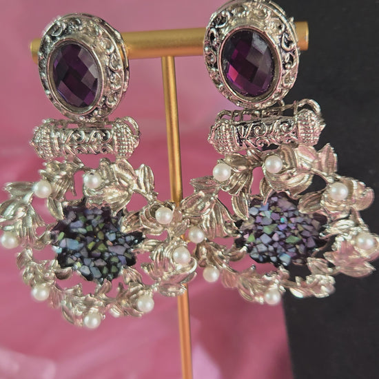 Royal Amethyst Bloom | Oxidized Silver & Purple Floral Mop Necklace Set