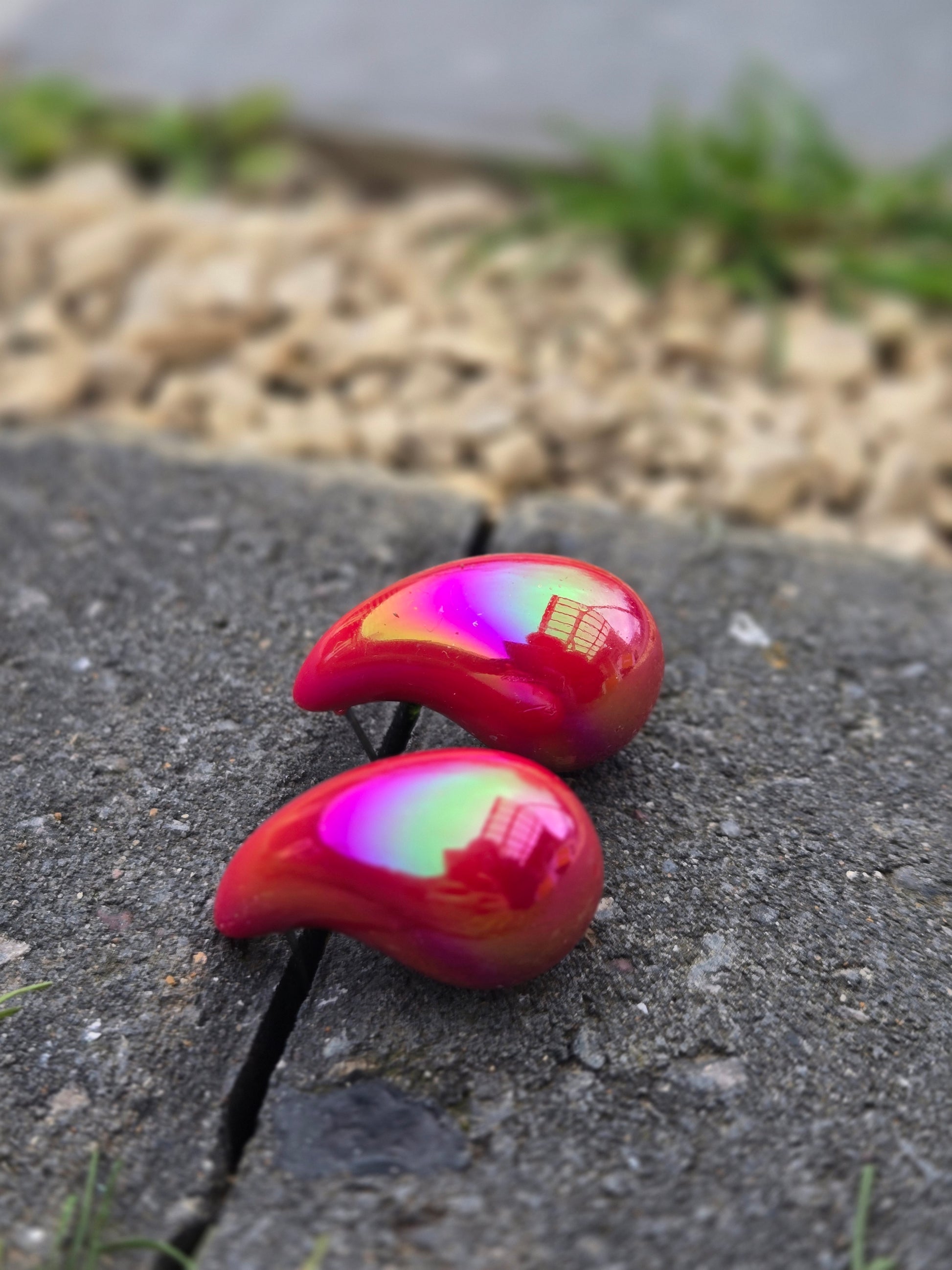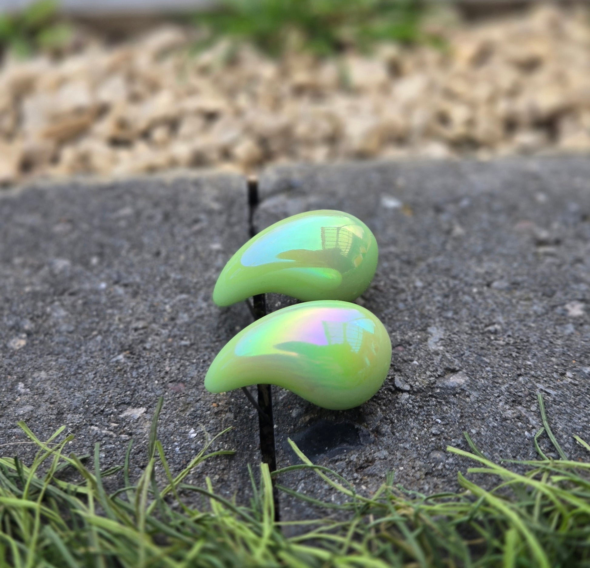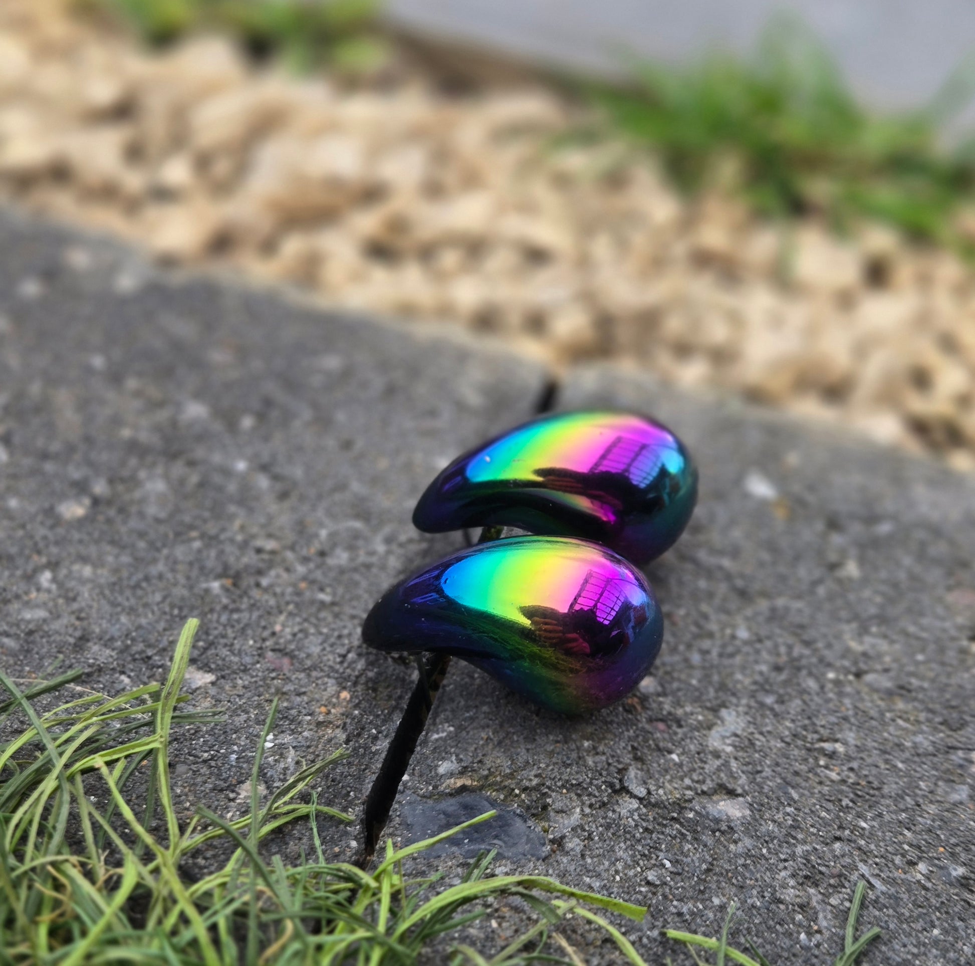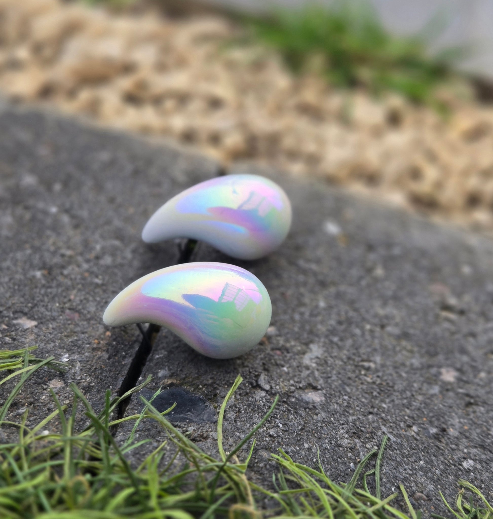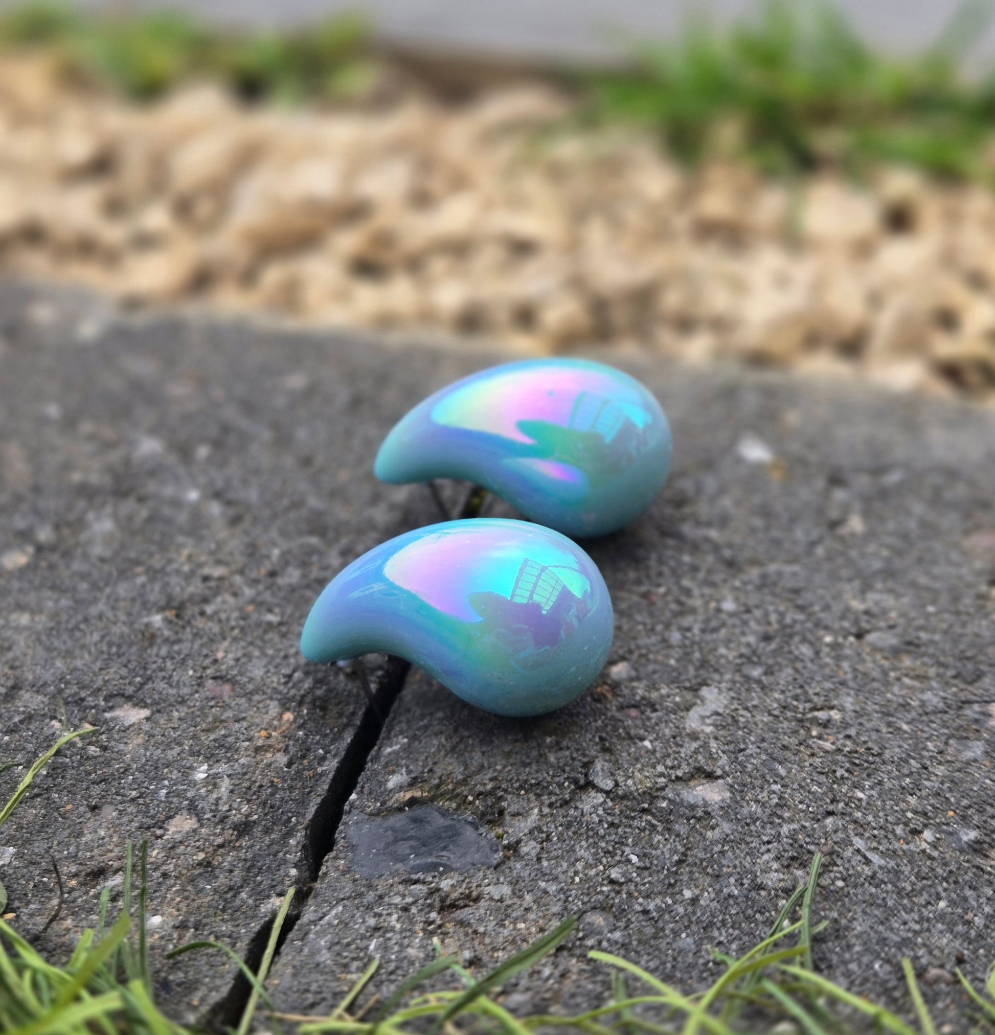 Dive into a spectrum of colour with our Iridescent Mermaid Teardrop Stud Earrings. This playful collection features smooth, curved stud earrings in a unique, comma- or teardrop-like shape, each finished with a brilliant, highly reflective iridescent coating.